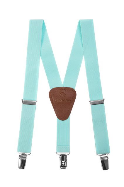 Chlapecké šle Y s koženým středem a zapínáním na klipy - 25 mm, 862-981012, Světle mátová, béžová kůže