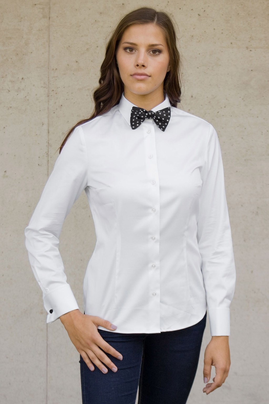 Dámská košile s dvojitými manžetami na manžetové knoflíčky, 722-1, Bílá
