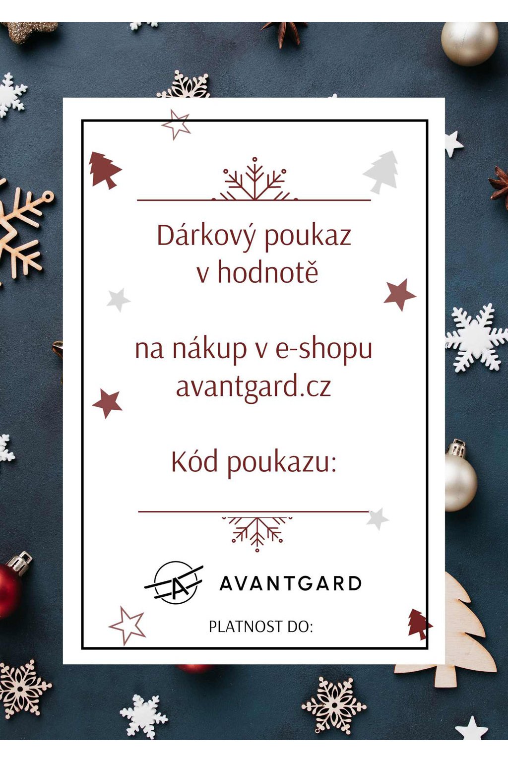 Tištěná verze dárkového poukazu. Pokud chcete někoho obdarovat produkty Avantgard a nejste si jisti výběrem, pak je Dárkový poukaz avantgard.cz správná volba. Vybírat můžete z několika hodnot. Poukaz je vytištěn na kvalitním křídovém papíře vysoké gramáže. Chcete-li mít dárkový poukaz hned u sebe, zvolte místo tištěné verze poukaz PDF.