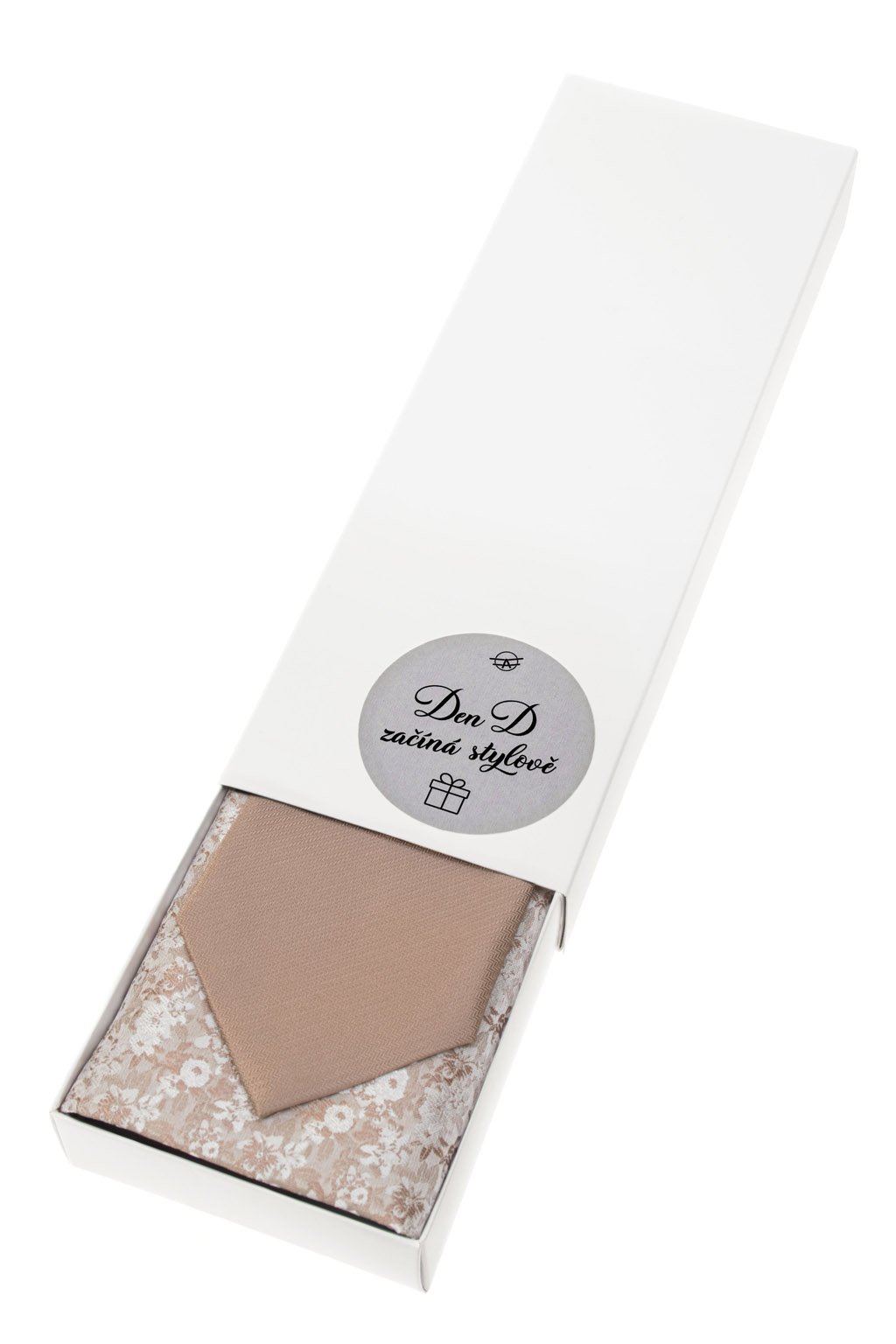 Dárkový set Den D začíná stylově - Kravata s kapesníčkem v papírové krabičce, 919-0481500, Béžová