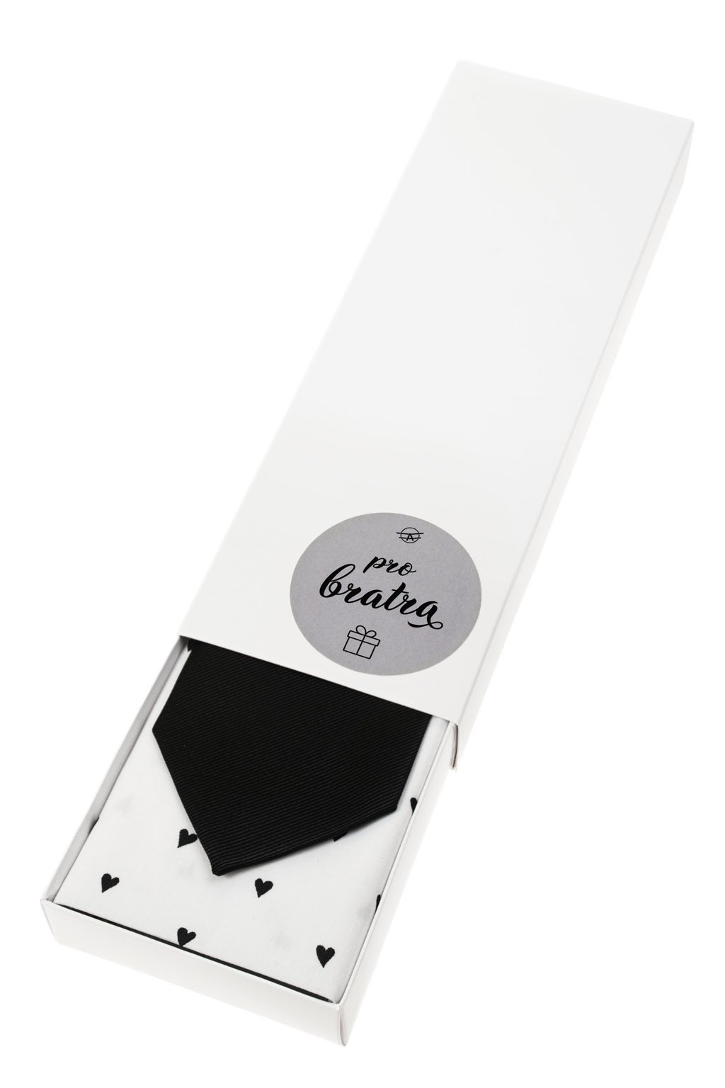 Dárkový set Pro bratra - Kravata s kapesníčkem v papírové krabičce, 919-0622329, Černá