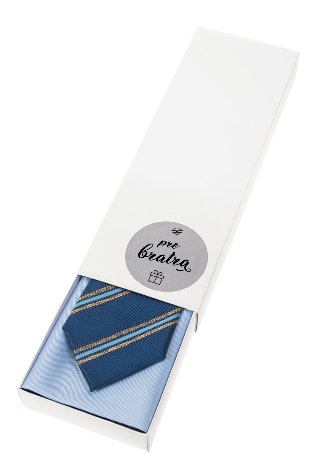 Dárkový set Pro bratra - Kravata s kapesníčkem v papírové krabičce, 919-0681496, Modrá
