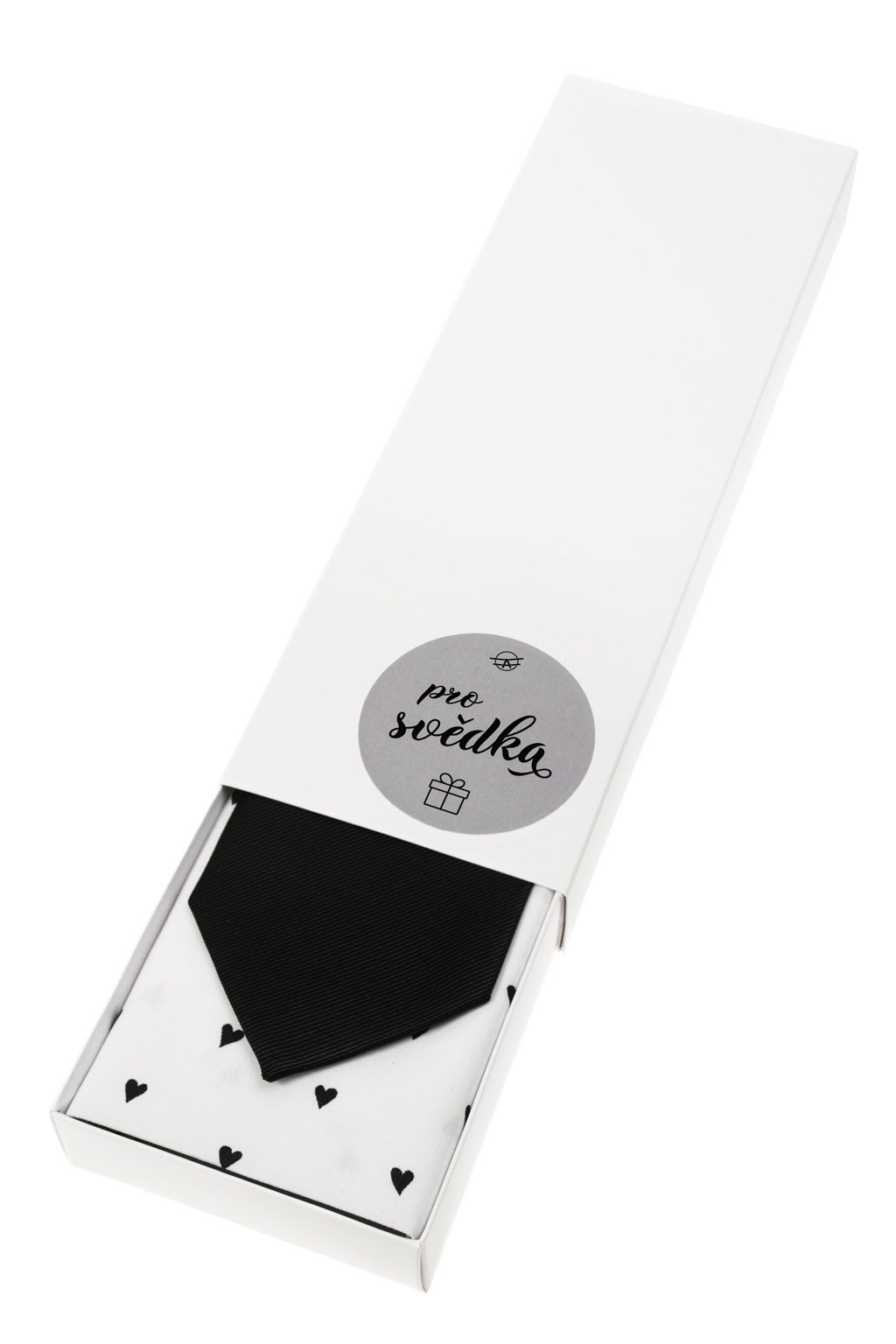 Dárkový set Pro svědka - Kravata s kapesníčkem v papírové krabičce, 919-0822329, Černá