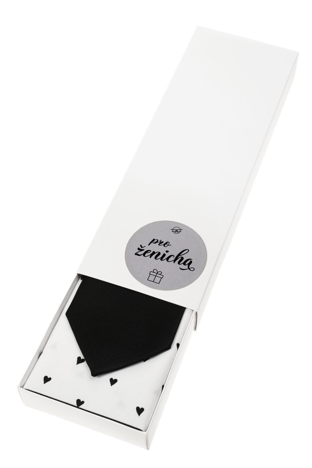 Dárkový set Pro ženicha - Kravata s kapesníčkem v papírové krabičce, 919-0722329, Černá