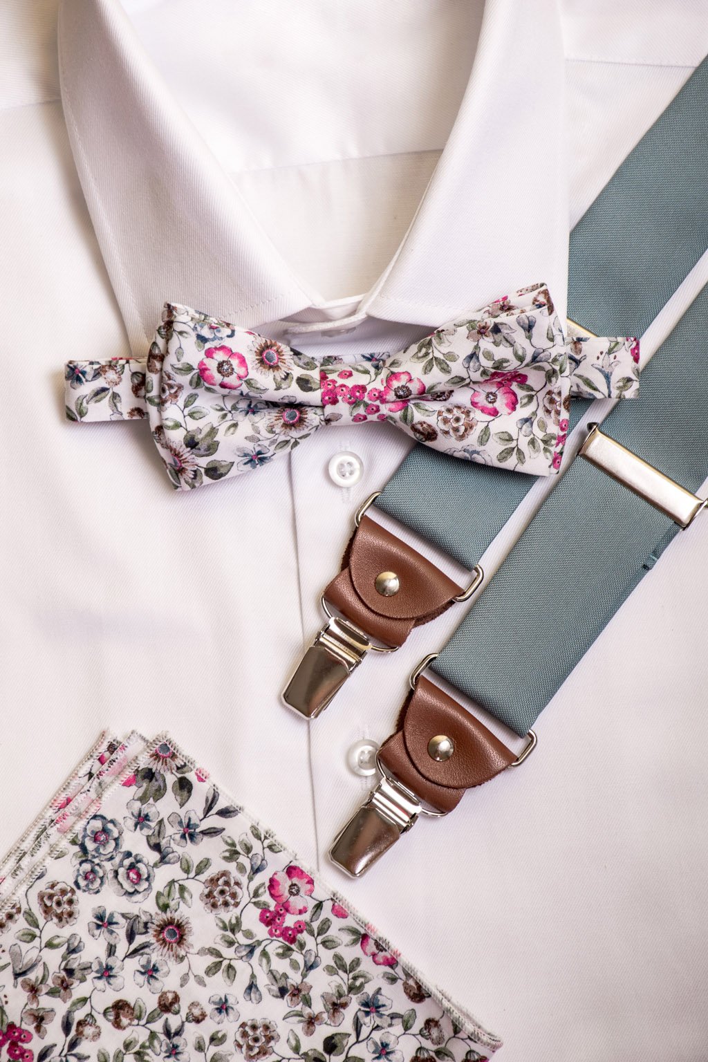 Motýlek PREMIUM bavlněný , 600-51077, Bílá/eukalyptová