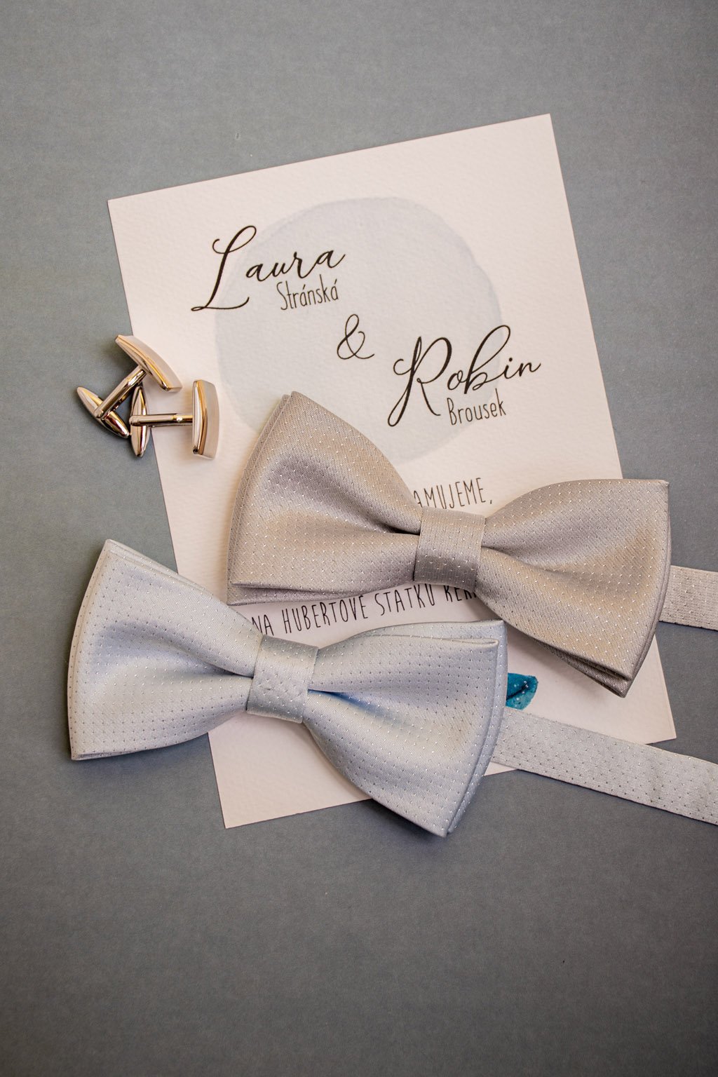 Motýlek s kapesníčkem, 575-22307, Šedá/stříbrná