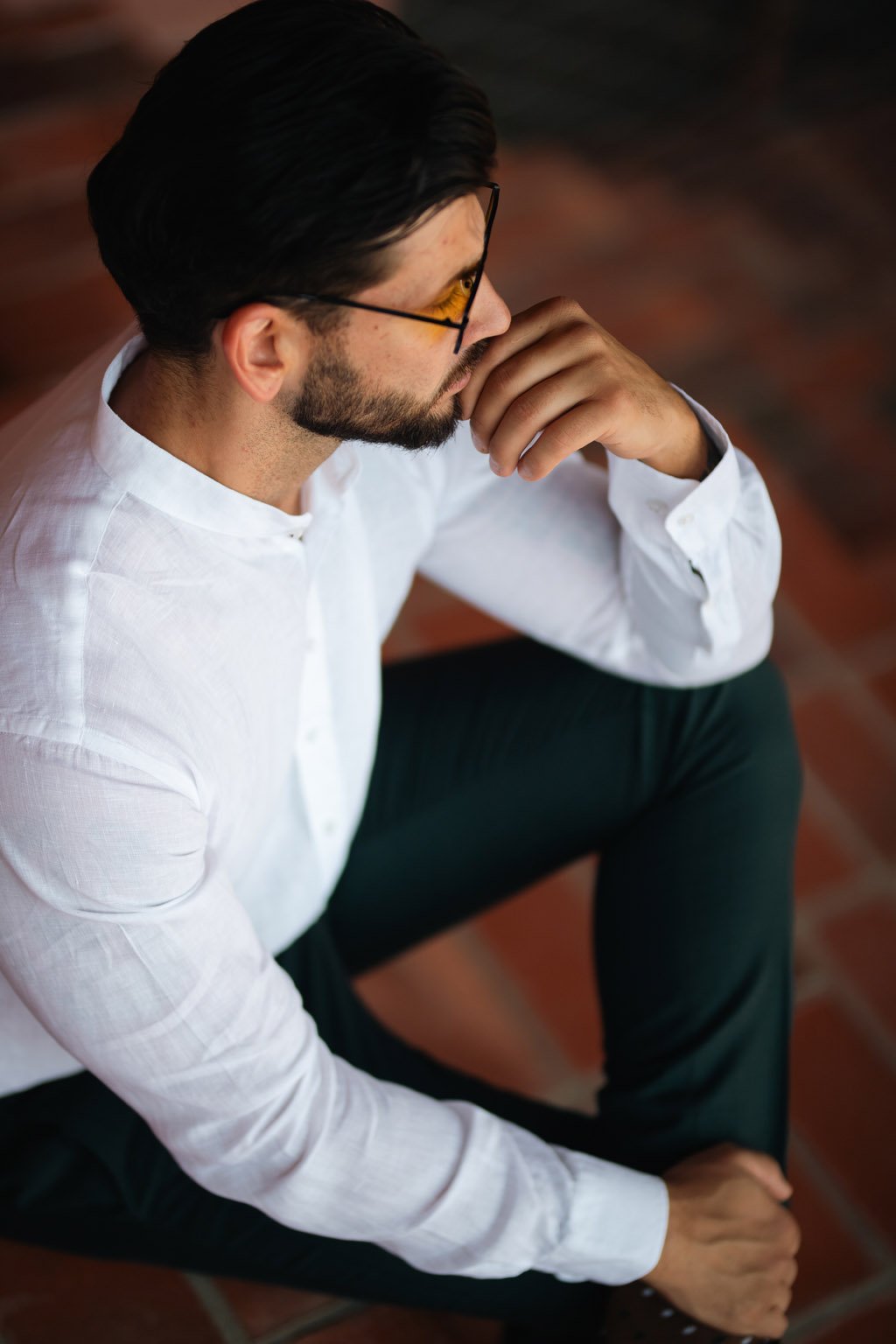 Košile v luxusním provedení střihu REGULAR se stojáčkem na jeden knoflík. Je vyrobena ze 100% lnu.