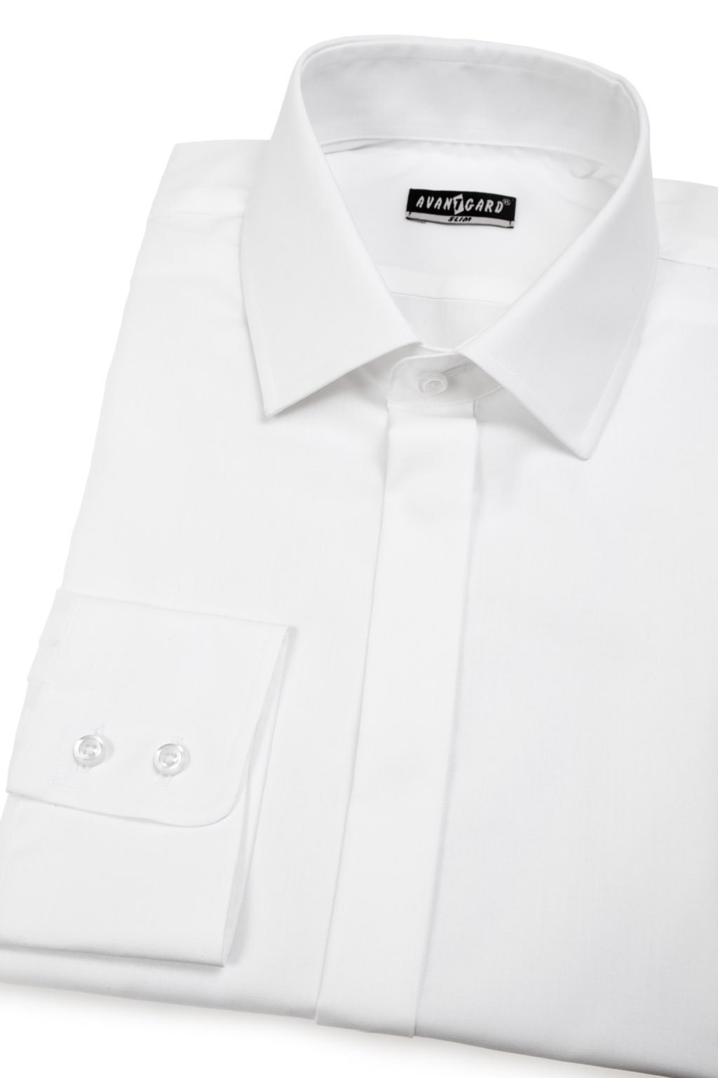 Pánská košile Avantgard vyštíhleného střihu SLIM s krytou légou a klasickým límcem. Model 132-001. Barva bílá.