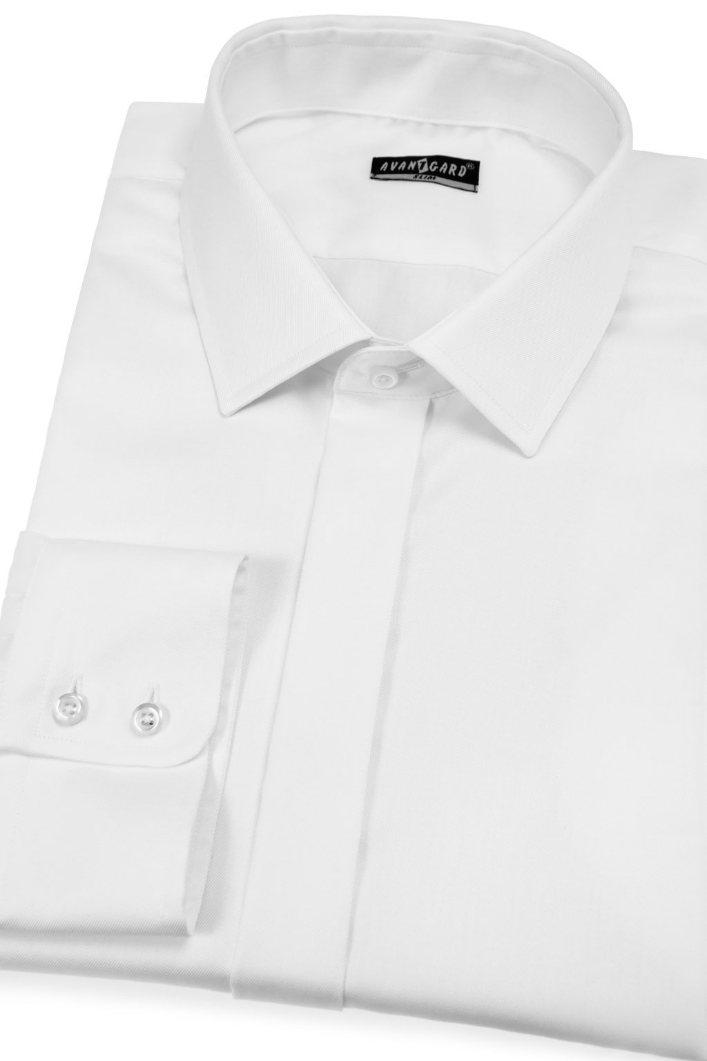 Pánská košile Avantgard vyštíhleného střihu SLIM s krytou légou a klasickým límcem. Model 132-001. Barva bílá.
