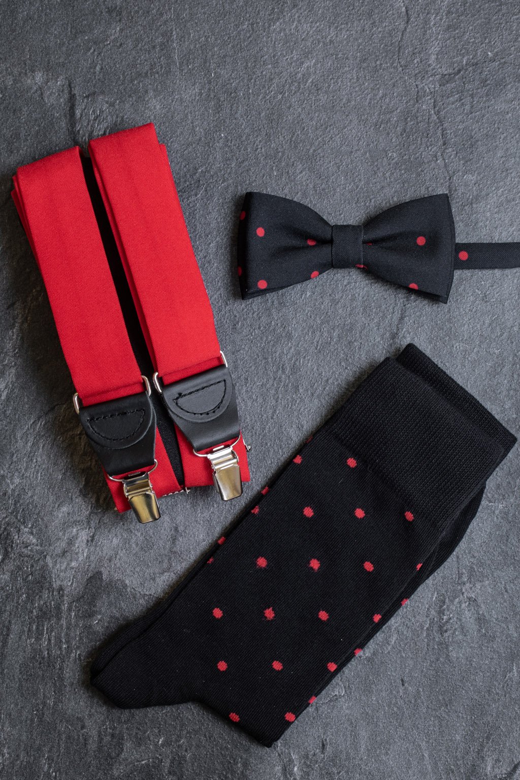Set motýlek a ponožky, 779-05005, Černá s červeným puntíkem