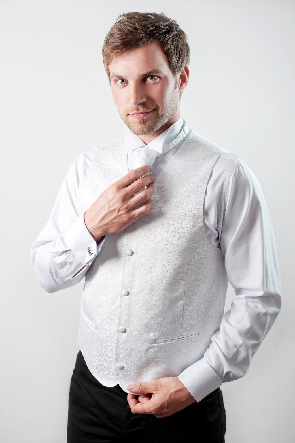 Set vesty, regaty a kapesníčku z unikátní kolekce Avantgard. Tento set je ideální pro významné události, jako jsou například svatby.