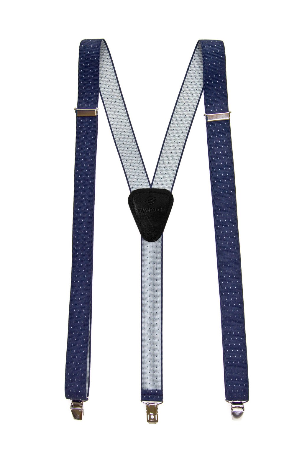Šle Y s koženým středem a zapínáním na klipy - 25 mm, 867-3101, Modrá s bílým puntíkem