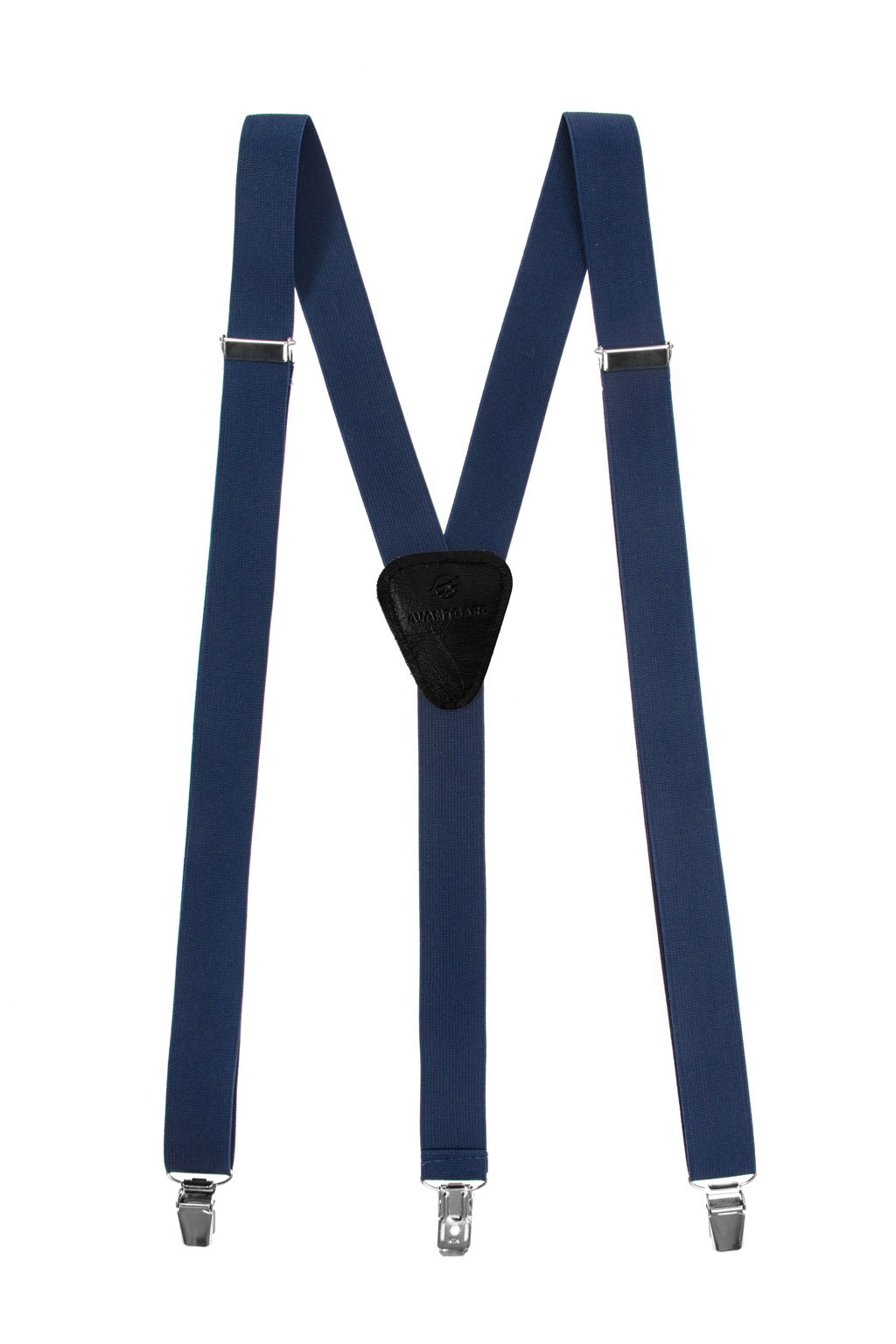 Šle Y s koženým středem a zapínáním na klipy - 25 mm, 867-3123, Tmavě modrá, černá kůže