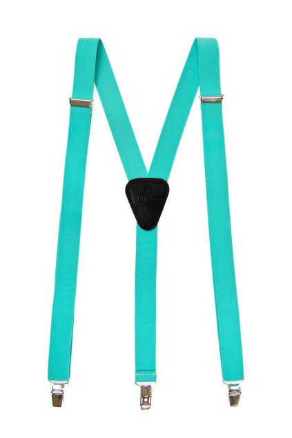 Šle Y s koženým středem a zapínáním na klipy - 25 mm, 867-904363, Mátová, tmavě hnědá kůže