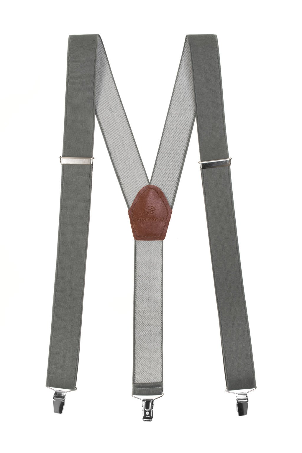 Šle Y s koženým středem a zapínáním na klipy - 35 mm, 856-902063, Grafitová, tmavě hnědá kůže